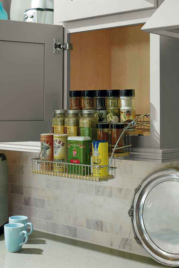 At your fingertips! Our Pull-down Spice Rack makes it easy to get to what you need without rooting in the back of the cabinet for that one spice you can never find.